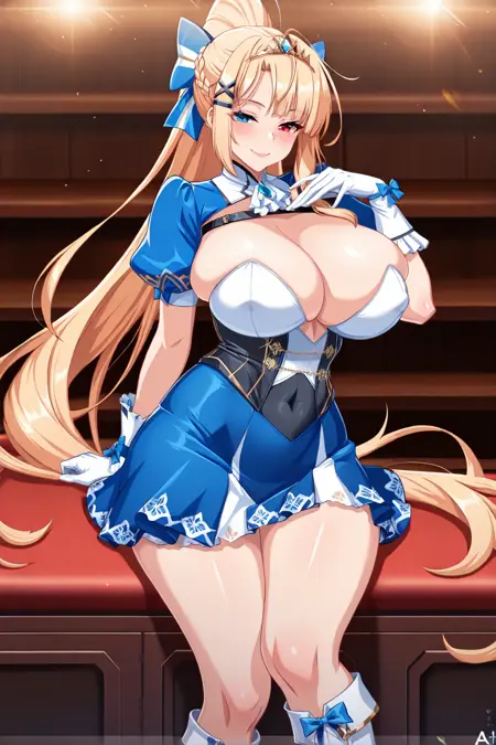 王冠,发带,头饰,高马尾,长发,极长发,金发,辫子,蓝色蝴蝶结,