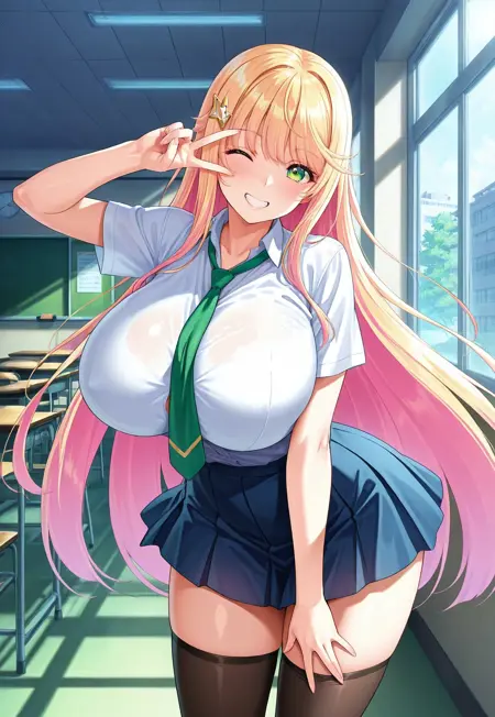 タグ:ダイドウジ ナミ、長い髪、金髪、緑の目、巨大な胸、くびれ