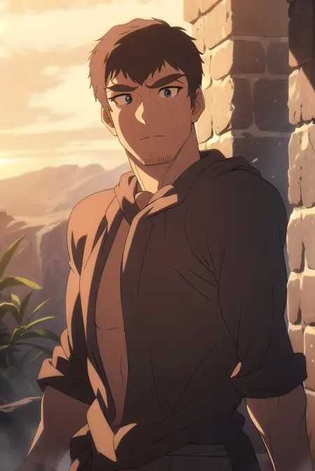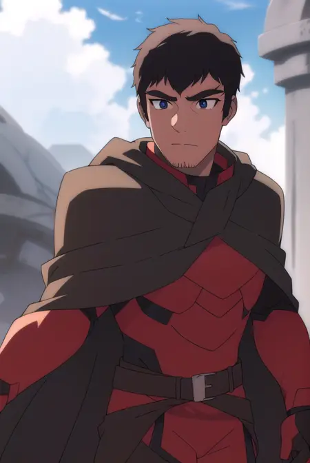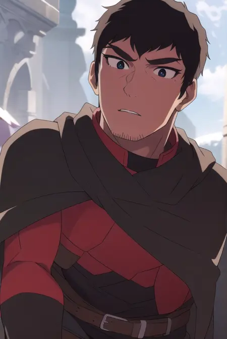 davion, short hair, black hair, 1boy, facial hair, thick eyebrows, muscular male, bara, sideburns, mature male, stubble, muscular, (black eyes:1.5),