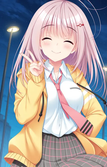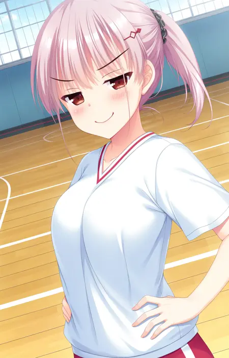 Base: Adachii,Brown eyes,bangs,Red eyes,hairclip,long hair, hair ornament,pink hair,