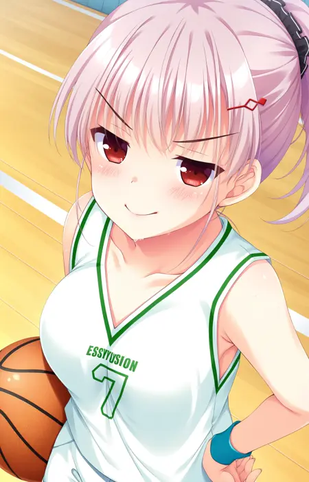 gym uniform(Don't expect anything about the team name): Basket Adachii,sportswear,shoes,socks,white shorts,basketball uniform,white socks,sneakers,collarbone,