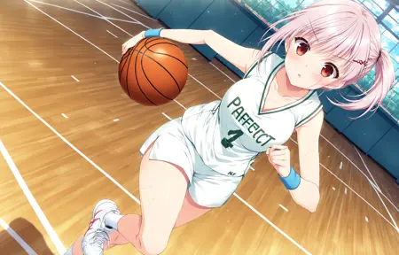 ポニーテール、サイドポニーテール、リストバンド、短いショーツ