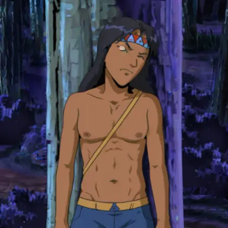 솔로, 1명의 소년, 남성 중심, 이름 없는 인물, 원주민 피부, 긴 검은 머리카락, 헤드밴드, 젖꼭지, 청바지