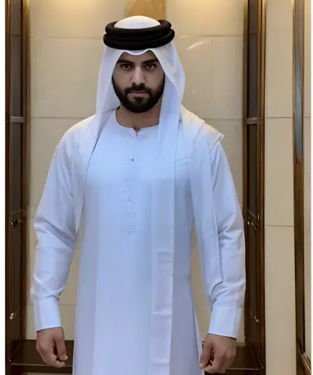 The white robe, called thoub/thobe, dishdasha, or andura, is the main item of clothing for Gulf men and is generally worn with a pair of loose-fitting trousers called sirwal, either long or short.