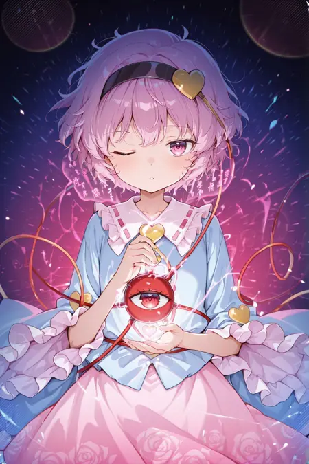 komeiji satori, 1girl, solo, pink eyes, third eye, pink hair,
