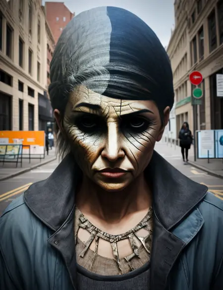 将神经网络与真实大脑类比,有助于我们更好地分析提示结果。在大脑中,信息是相互连接的。另一个例子:看看你接下来看到的第一个人,他的脸是什么形状?你会用“2形”这个概念来描述他的脸型。在我另一篇指南中,我尝试仅用形状训练风格 LoRA,结果成功了!但它太成功了,因为每张图片都包含形状,甚至可能是看起来呈三角形的透视!因此,这个概念以不同方式被注入到图像中。(请参考 AIGARLIC 的指南,他们对 LoRA 做过一些基础训练测试)这有时使得人物生成变得极其困难。火的训练尤其具有挑战性,最终结果是人脸常常“由火构成”,变得模糊或“燃烧”。
