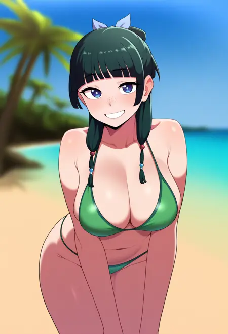 基础提示词:1girl, maomao, blue eyes, blunt bangs, freckles, green hair, hair ornament, long hair