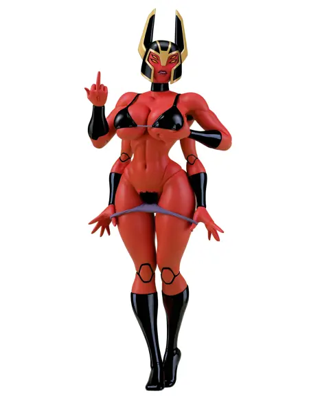 l00m2, 1girl, alien, extra eyes, four eyes, colored skin, red skin, extra arms, r0y2l_attire, helmet, gold armor