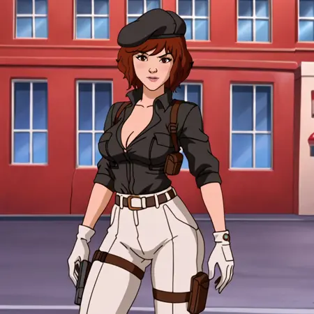 - モダンな服装付きトリガー: AprilONeilModern, 1girl, 茶色の髪, 茶色の目, 時計, レトロアートスタイル, 腕時計, 1980年代 (スタイル), 白いベルト, 袖をまくり上げた, 短髪, ジャンプスーツ, 中程度の胸, カウボーイショット