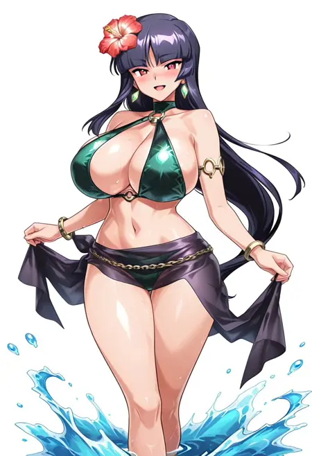 TAGS : green bikini,sarong,bracelet,flower,chain,gem,hibiscus,hair ornament,armlet,anklet,armlet,earrings,jewelry,o-ring,choker,