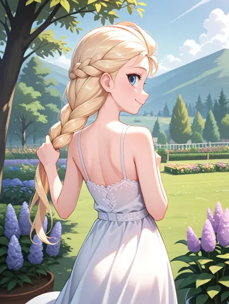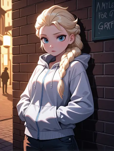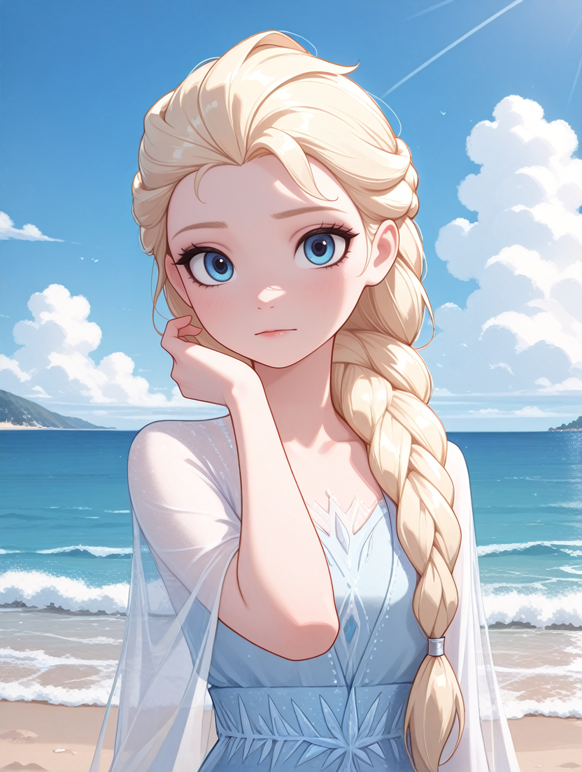 DisneyElsa, 1girl, blonde hair, blue eyes, braid, long hair
