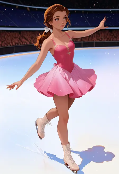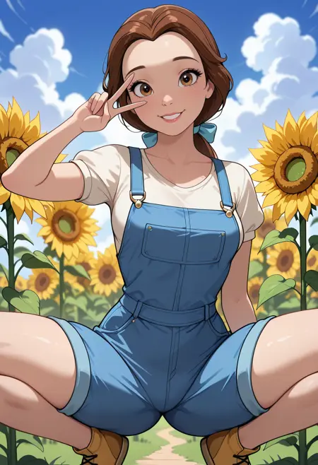 DBelle, 1irl, long hair, brown hair, brown eyes, low ponytail, hair bow