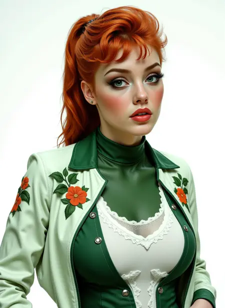 As some of you may know, I have a special fondness for the style of the 1950s. With that in mind, I decided to create a version of Ivy inspired by that era. However, she does have her own issues. Her outfit can be inconsistent when using the master prompt: