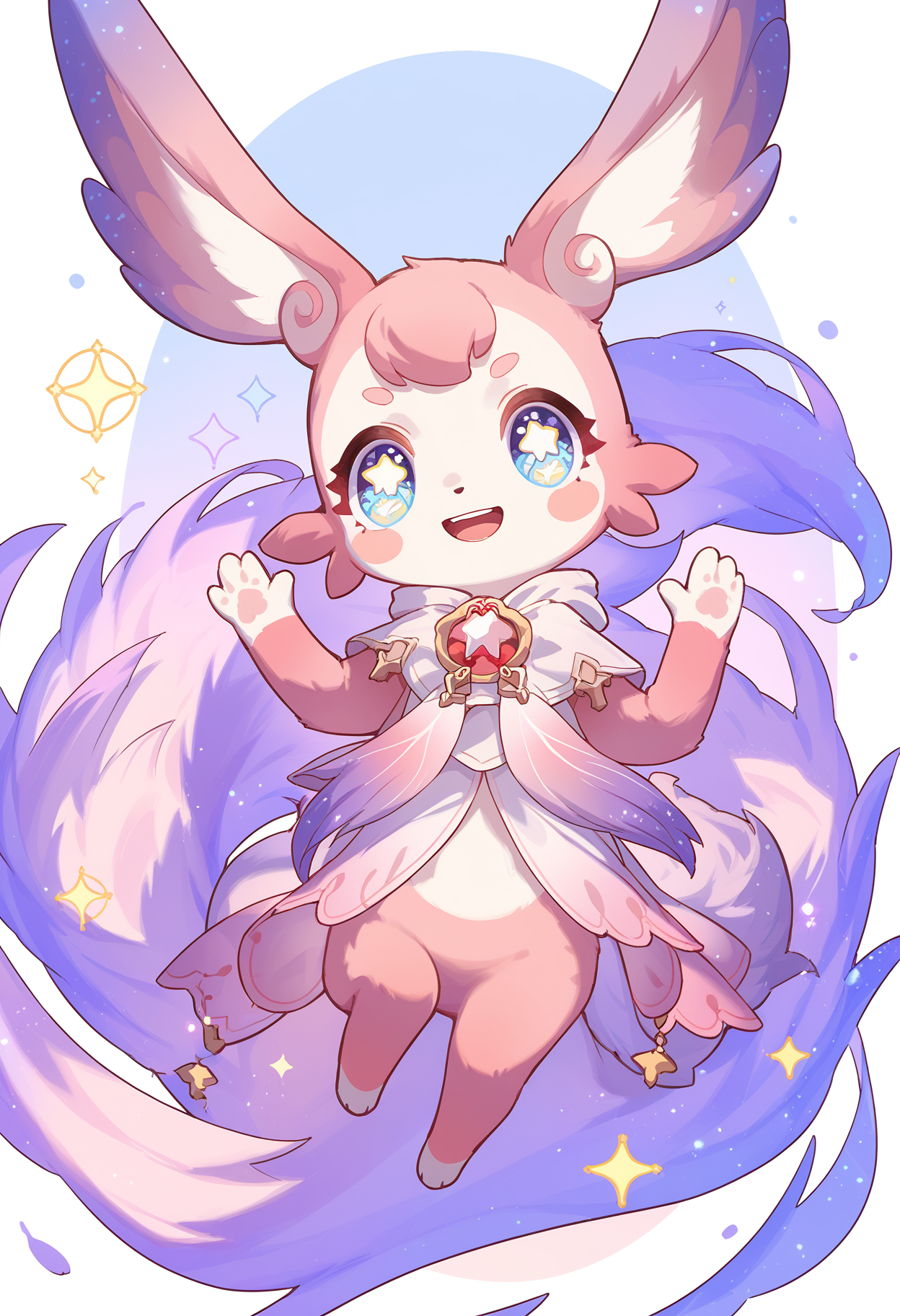MIMI_HSR,white pupil,star-shaped pupils,blue eyes,pink fur,