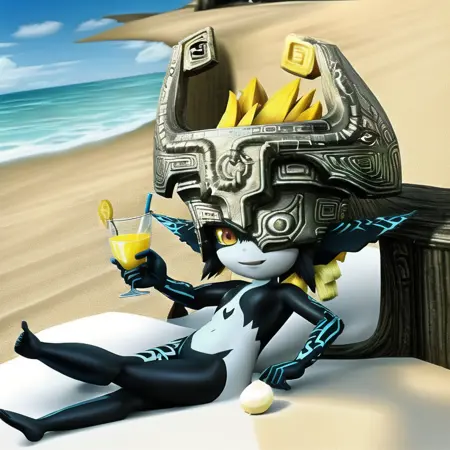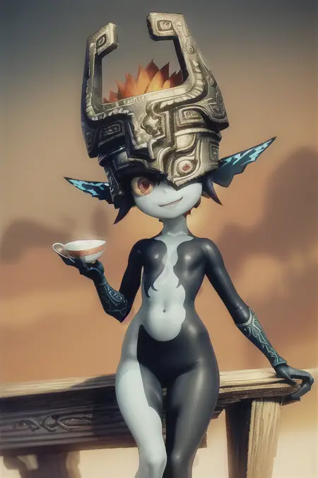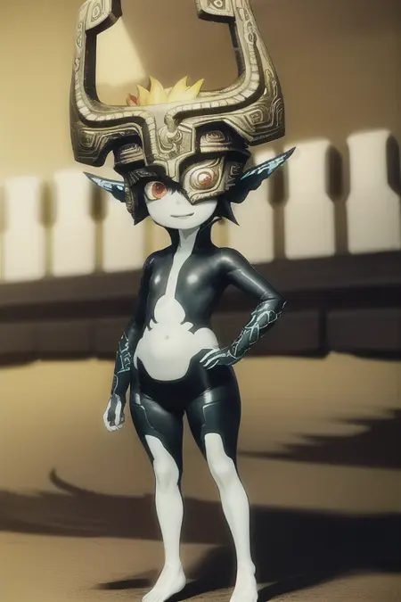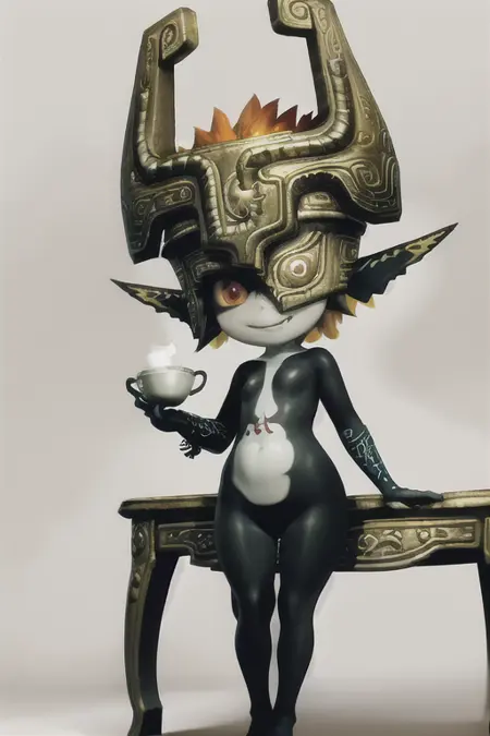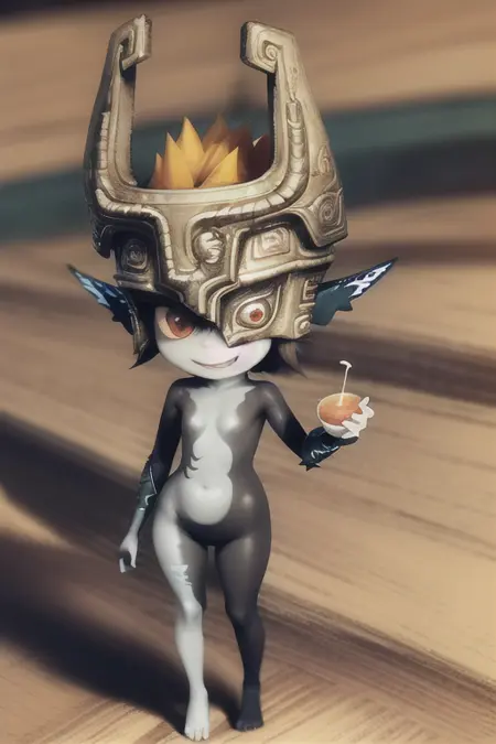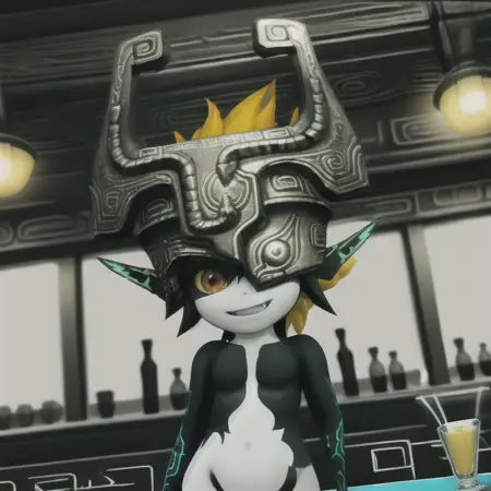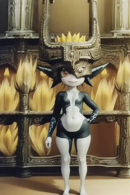 And this? This is Midna, based on an old model I made. I made her somewhere around 2020 in blender and other programs (cough) as a game character. This model has been trained on my artwork.