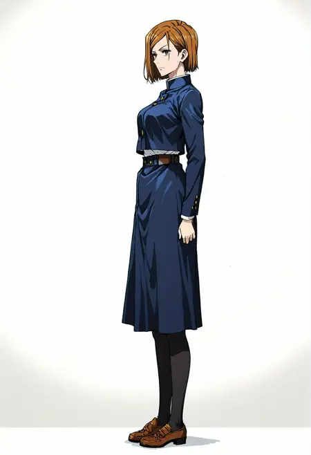standing at attention, arms at side, looking at viewer