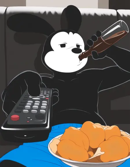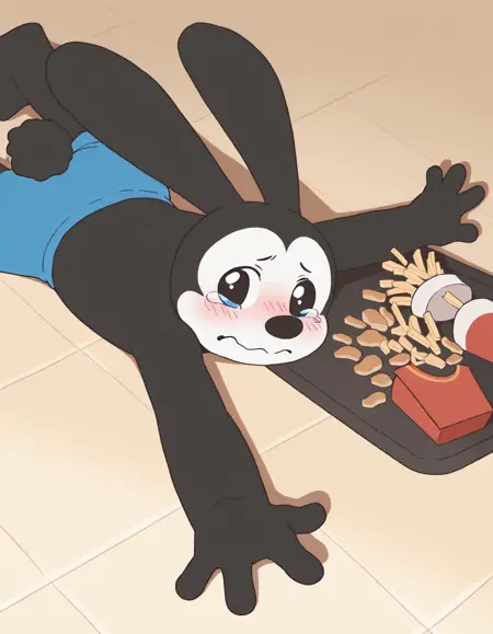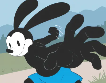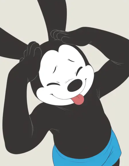 프롬프트: Oswald, cartoon, male, white face, blue shorts.