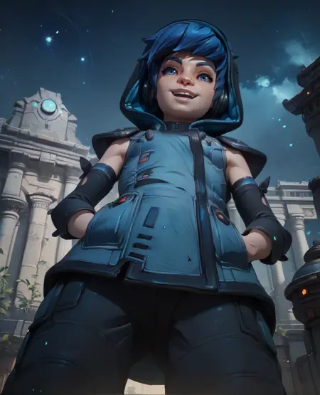 headphones, jacket, or vest, fingerless elbow gloves, or detached sleeves, single bracer, pants, shoes,