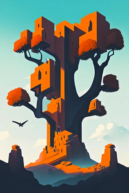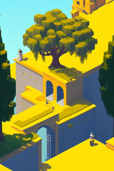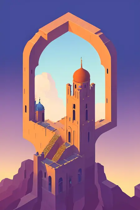 纪念碑谷LoRA,可使用SD艺术家增强质量。