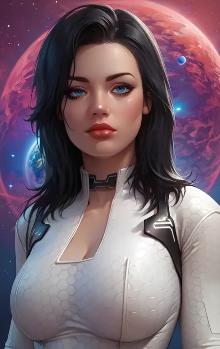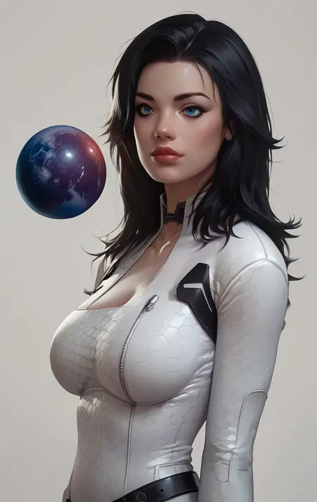 m1r4nd4, 1girl, solo, long hair, breasts, blue eyes, black hair, belt, lips, bodysuit,
