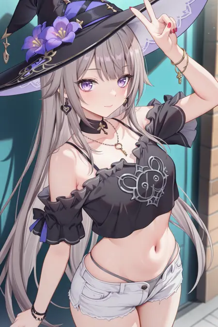 标签:tj_TheHerta,帽子,长发,脱落的袖子,珠宝,连衣裙,女巫帽,耳环,花朵,刘海,帽饰花朵,项链,钥匙,裸露肩膀,黑色连衣裙,黑色鞋履,荷叶边袖子,黑色头饰,灰发,荷叶边,长袖,十字架,紫色花朵,长筒袜,靴子,及膝靴