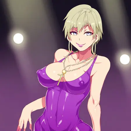 二条宜子:nijou_noriko,锐利的棕色眼睛,美丽的深紫色中短发,刘海,巨大而蓬松的乳房,