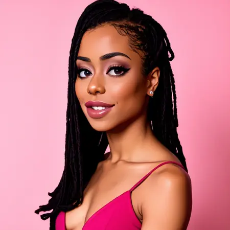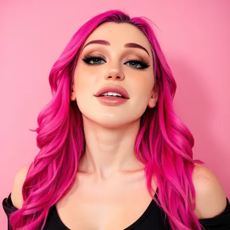 示例:XCL风格肖像,一位金发蓝眼的女性,背景为粉色……等。