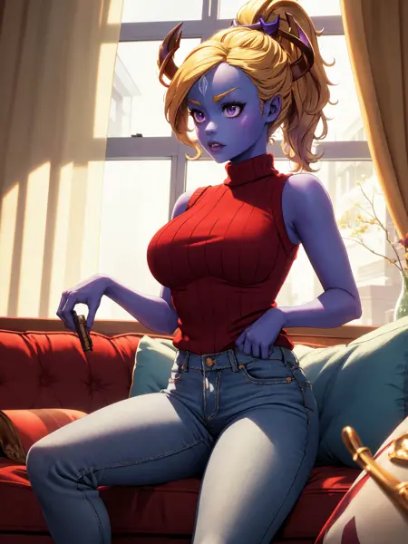 触发词:始终需要 "sovasub" 并搭配 "有色皮肤、紫色皮肤、额头印记、大胸部" 以在低权重下保持一致性。
