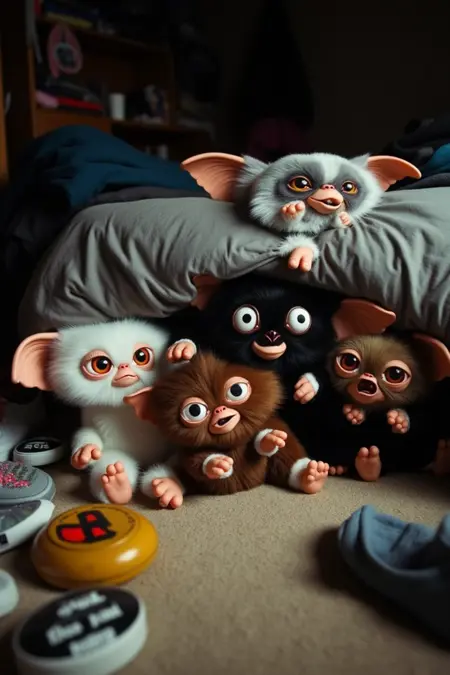 Mogwais Flux - おちゃめでかわいらしい小悪魔たちが、V2新バージョンで帰ってきました!あなたが彼らに繰り広げるさまざまな冒険に、私たちのふわふわの友達と一緒に参加してください。このスタイルで、あなたのモグワistikなアイデアや創造物を探索し、そこにおちゃめな創造の火花を加えて、彼らを生き生きと形にしてください。このLoRAは、これらの象徴的で愛らしい生き物と、彼らの変わり者のような振る舞いを再現することを目的としています。このスタイルは、モグワイの視覚的に遊び心あふれるふわふわな創造物と、神秘的で変則的な行動に着目しています!