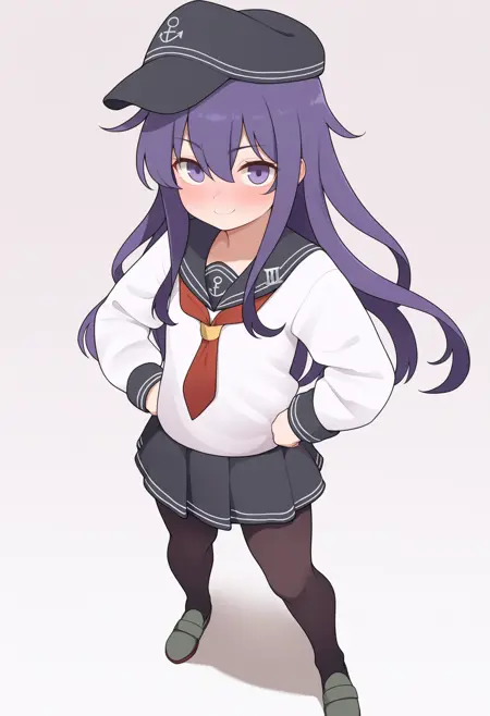 기본 프롬프트: 1girl, akatsuki \(kancolle\), 보라색 머리, 긴 머리, 눈 사이의 머리, 보라색 눈