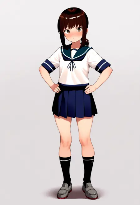 Basic uniform prompts : sailor collar, school uniform, serafuku, pleated skirt, kneehighs, loafers
