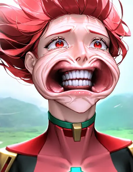 (オプション、歯茎がより目立つ)大きな口、開いた口、赤い内側、そして上歯/下歯、舌、口蓋垂はネガティブに含めてください