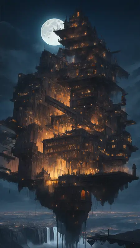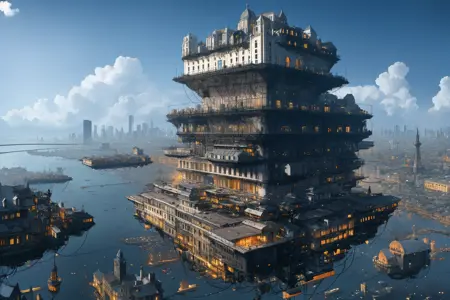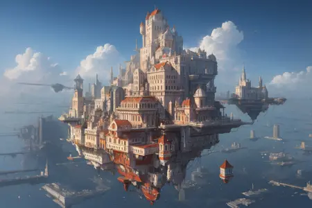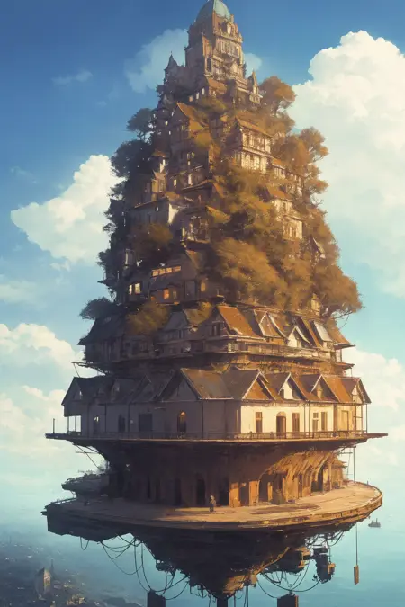 이 LoRA는 도시가 공중에 떠 있는 모습을 만들어냅니다.