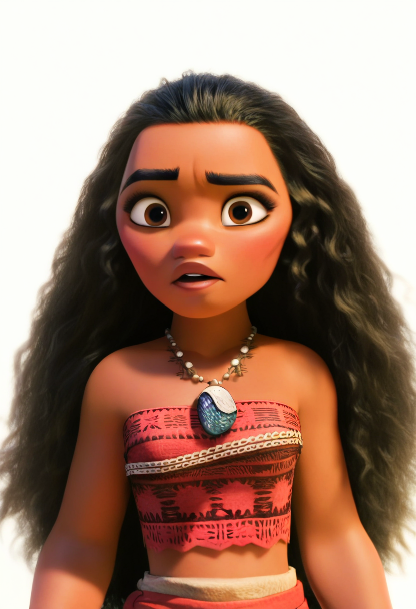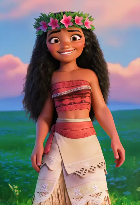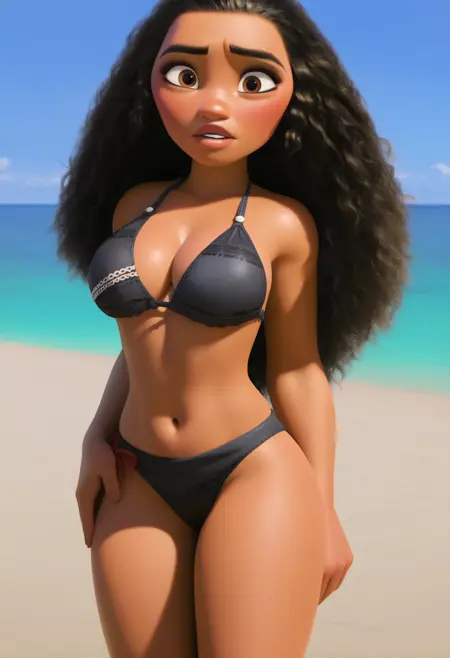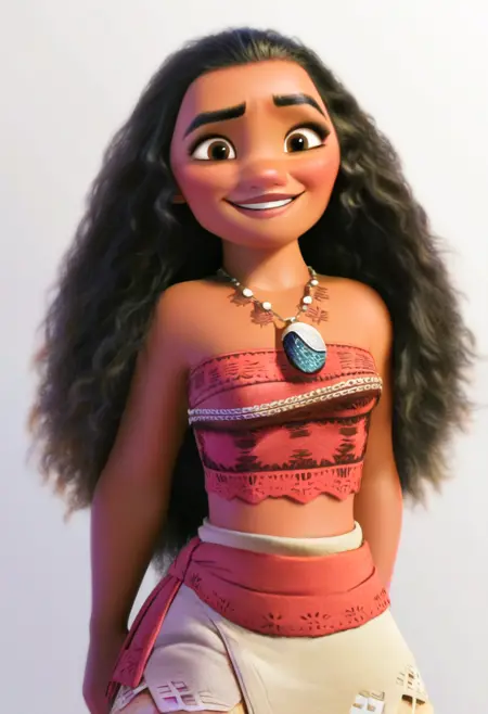 基本プロンプト:1girl, moana, black hair, long hair, brown eyes, curly hair, dark skin