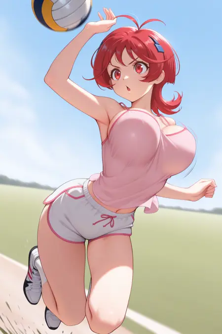 Trigger word is "aaoi" and "red hair, antenna hair, short hair, red eyes" is required.