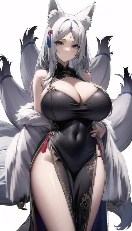 kyuubi,yukime-hairstyle,((forehead)), tassel hair ornament, fox girl,