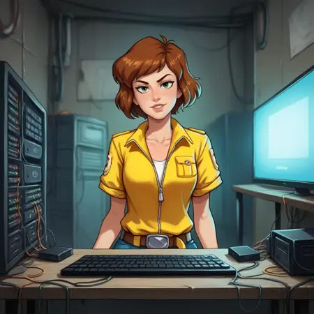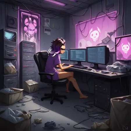 Optional: indoors, monitors,keyboard, computers, cables, messy