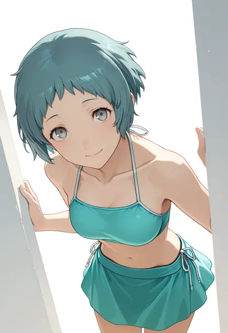 p3fuuka-swim, 泳装, 坦基尼, 水色比基尼, 比基尼短裙, 吊颈式, 白色细绳,