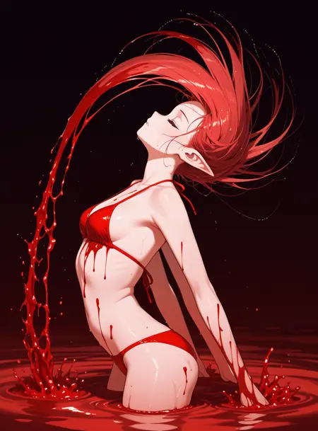 This LoRA is designed for creation of situations, where a character shakes her or his hair. It works with liquids (water, blood, honey, etc) and without them.