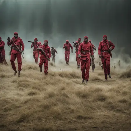 AscendentSoldiers 风格,一群穿着红色衣服的男人并排站立