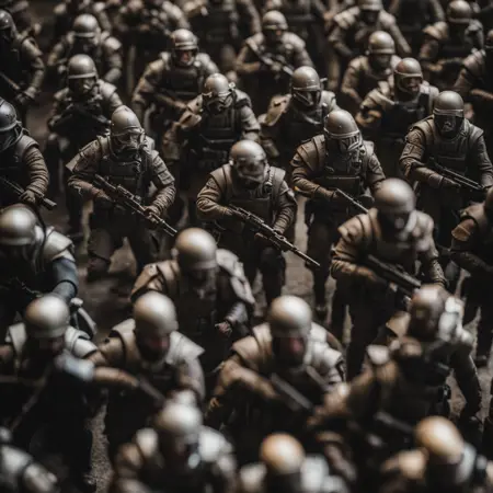 AscendentSoldiers 风格,一群动作人偶并排站立