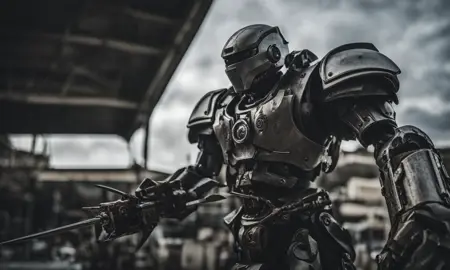 AscendentSoldiers 风格,机器人手持枪械的特写