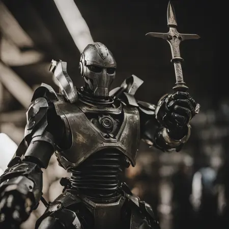 AscendentSoldiers 风格,机器人手持剑的特写