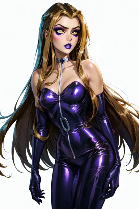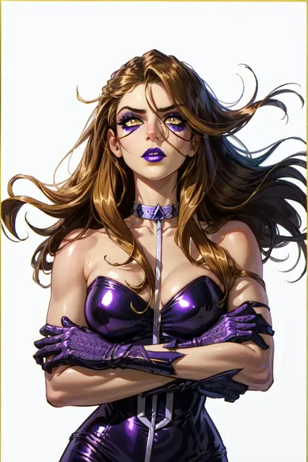 女巫装扮:WitchOutfit,妆容,紫色嘴唇,紫色紧身衣,无袖,手套