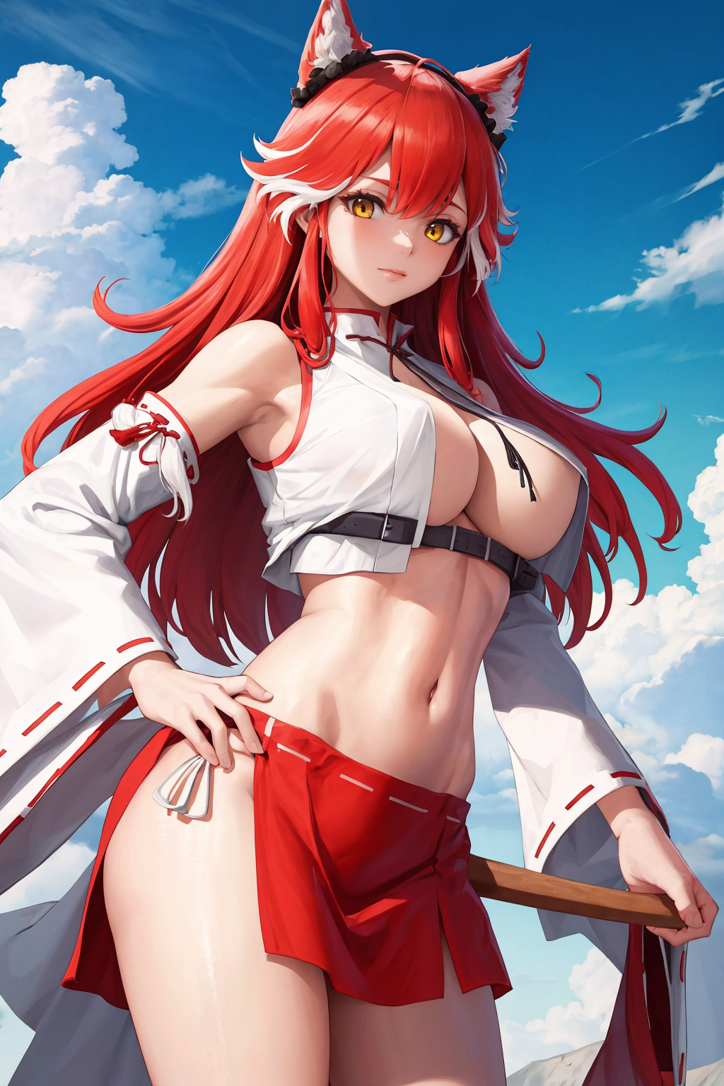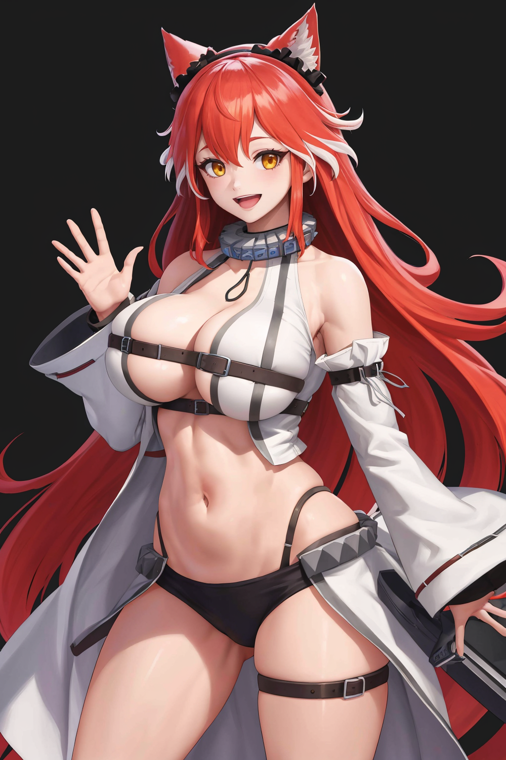 fenrir \(last origin\), fenrirdef, breast strap, center opening, navel, thighhighs, detached sleeves