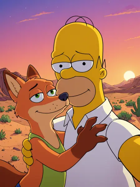 这里是为Illustrious生成的荷马,我使用Chromamix生成。关键标签是卡通着色和平涂色,用于控制风格。注意:'卡通着色'或'平涂色,截图'是辅助获得符合你需求的模型风格的标签。我使用Chromamix Sorbet或yiffymix 6.2。根据我最近模型的训练方式,它们在其他Illustrious模型上似乎会产生不一致的结果,抱歉 :(
