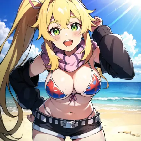 positive: best quality, highres,ultra-detailed, 1girl, solo_focus, lora:FredericaV4:1.0, Frederica, frederica_baumann, blonde hair, green eyes, long_hair, towel, wet_hair, after shower, large_breasts.