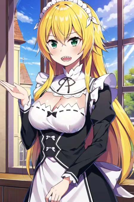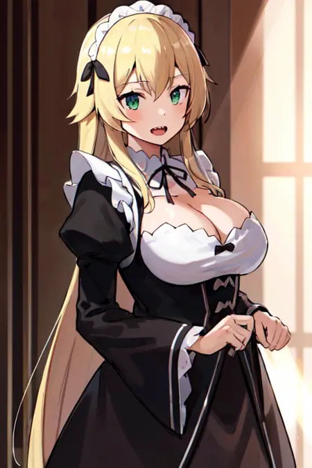 推奨タグ:frederica_baumann, green_eyes, long_hair, roswaal mansion_maid_uniform, large_breasts,