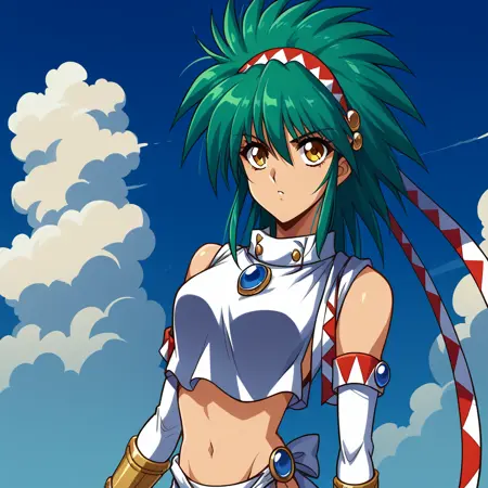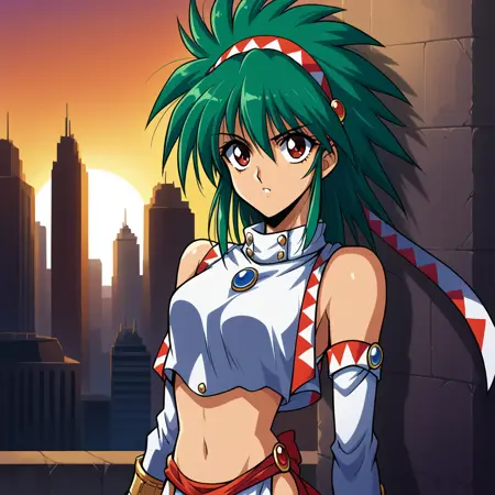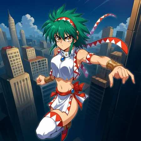 Like the other Sega Genesis girl, there's a dire lack of training material, and I think she has it a lot worse, so the output is rather rough. (edit: Actually the Pony version looks a lot better IMO) Expect a lot of details mismatch (color of leggings, position and size of neck jewel, funky hairstyle), though this is also the case in the original source material. Still, YMMV.