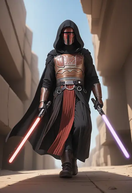 The legendary Jedi turned Sith turned Jedi from Star Wars KOTOR/SWTOR had one of the best aesthetics in all the Star Wars universe IMHO. This armor outfit is modular and works for both males and females. 😁